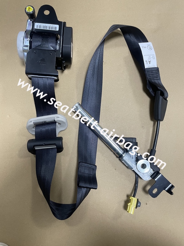 This OEM-quality seat belt features durable black webbing with an integrated pretensioner system that instantly tightens during collisions to maximize occupant safety.